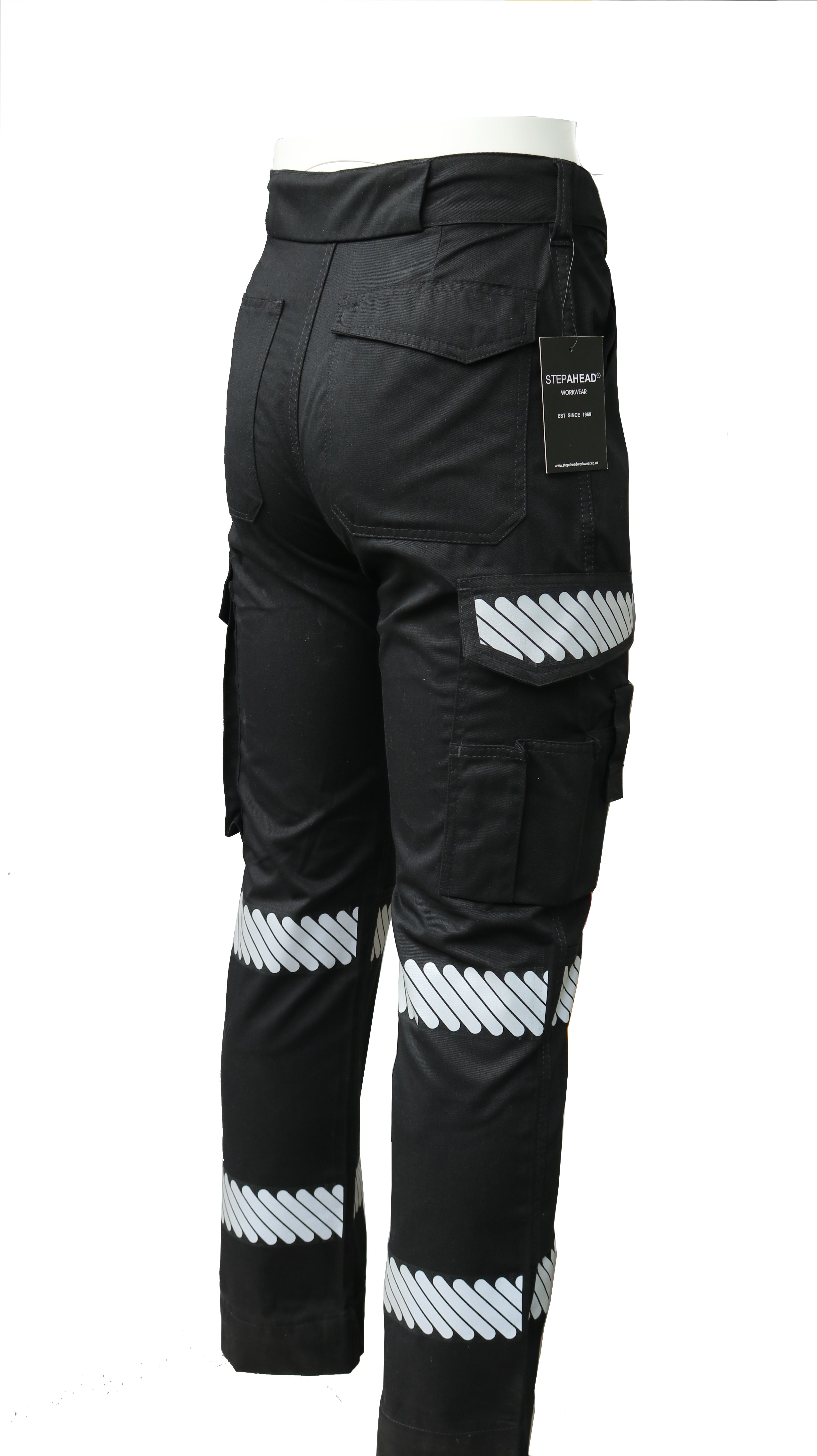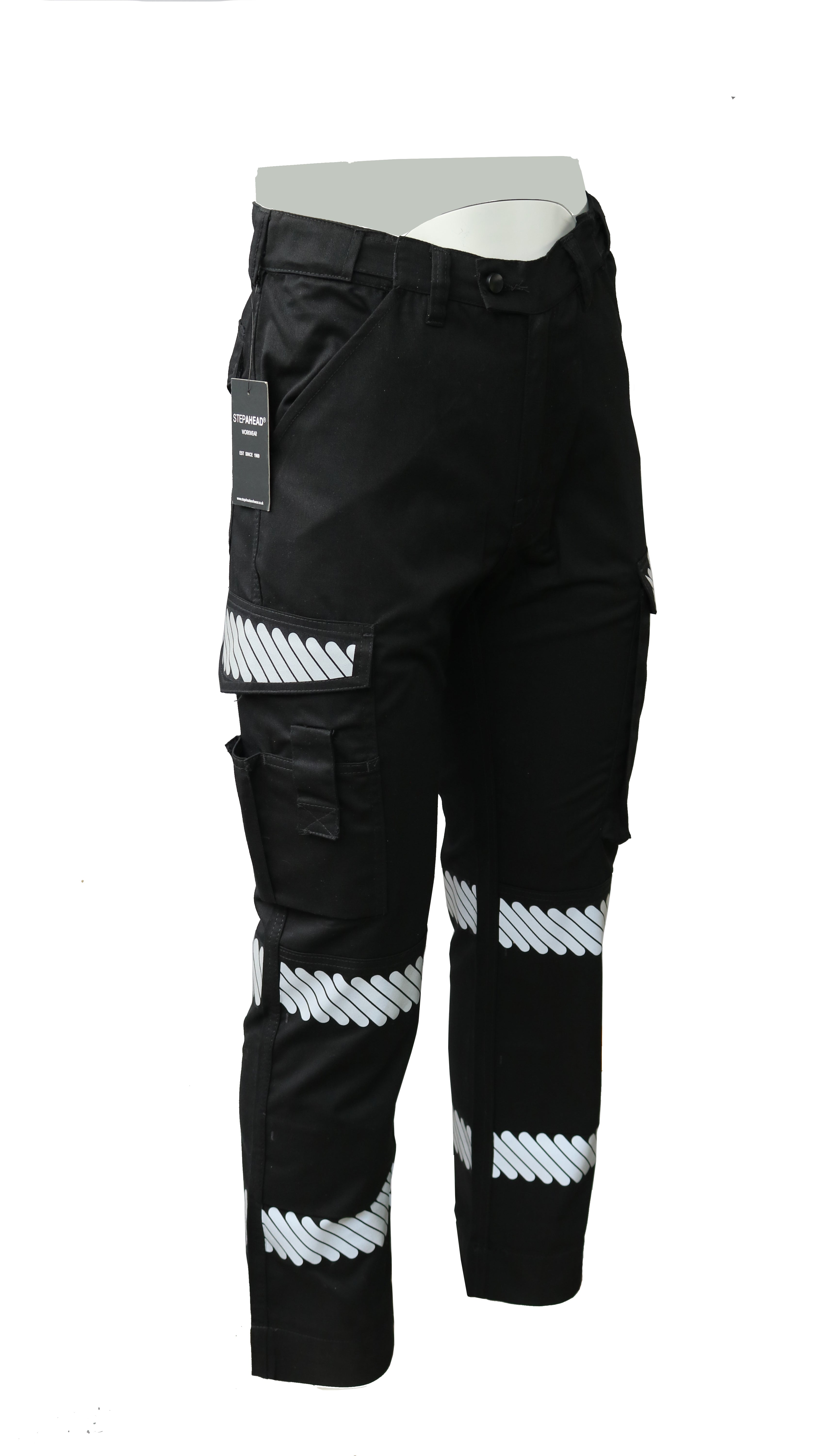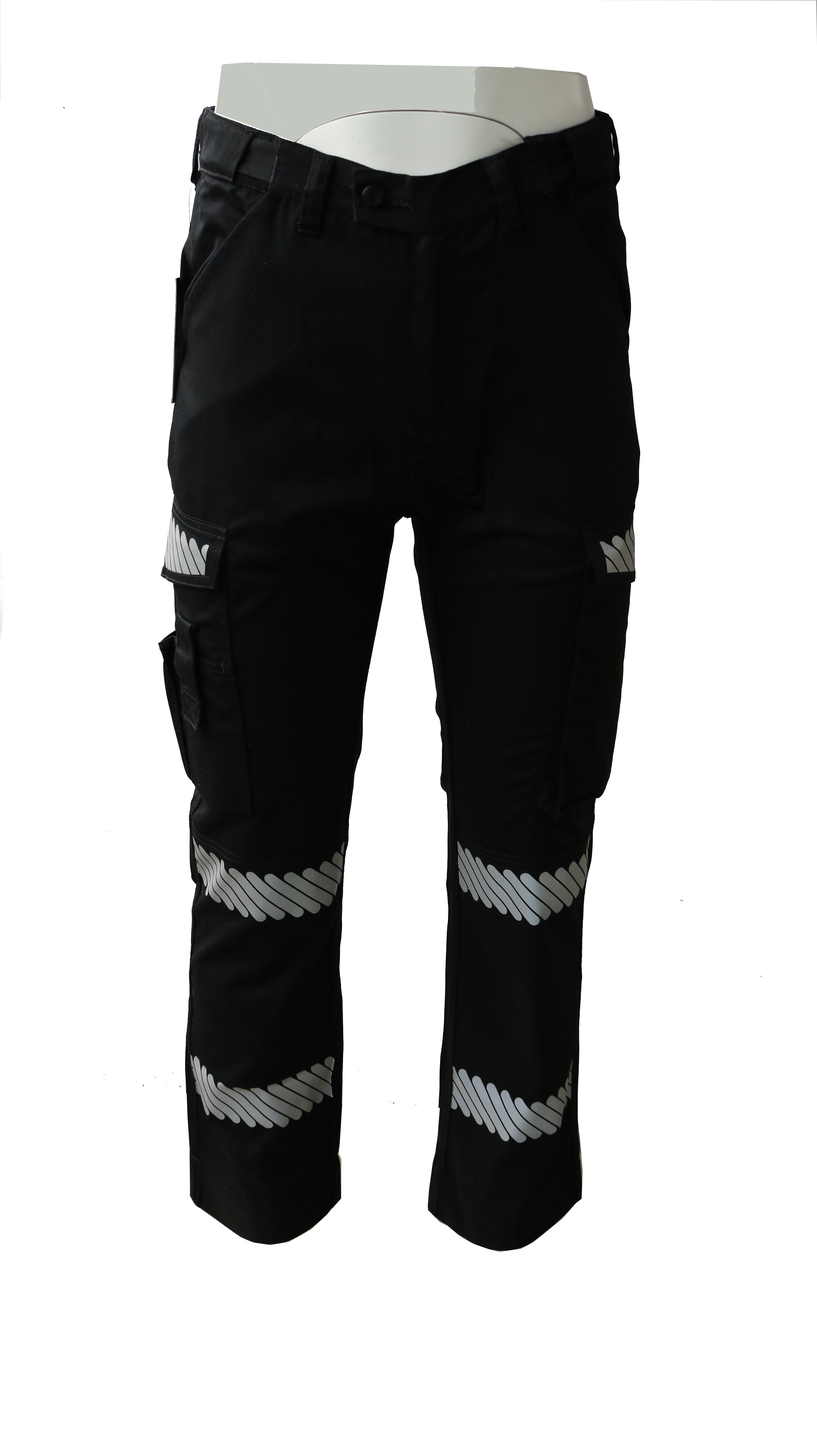 • Hi-Vis Reflective Tape – Segmented heat-transfer silver tape on legs and pocket flaps for low-light safety